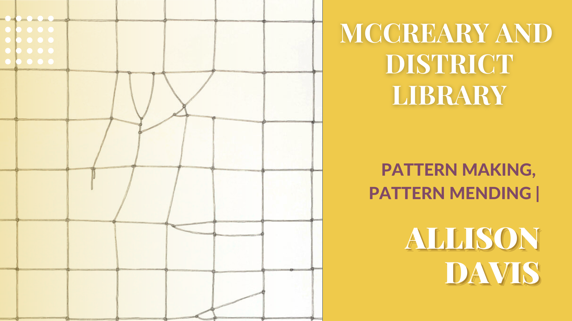Feb 1 February 1, 2023 @ 8:00 am - March 31, 2023 @ 5:00 pm Pattern Making, Pattern Mending | Alison Davis | McCreary and District Library
